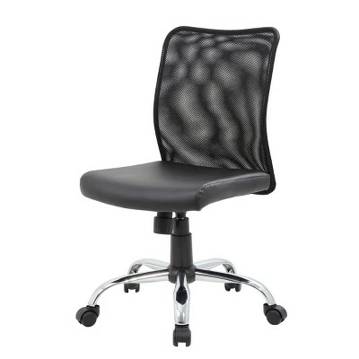 The budget mesh task chair is the perfect blend of a comfortable and professional design. The chair itself is created with a mesh backing for ultra-breathability, while the seat is designed with a solid, classy black vinyl. It also features a 25 inch chrome base with 2 inch nylon dual wheel castors for a smooth roll. The chair offers fantastic features such as a pneumatic gas lift that allows for easy adjustable height, as well offering a spring tilt mechanism, tilt tension and an upright lock.