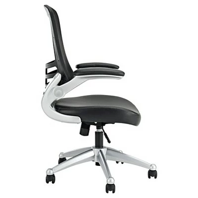 Taking you where you need when you need it most. The Attainment Office Chair is a form-fitting ergonomic chair made from the most revolutionary advances in seating today. The breathable mesh back is curved to assist back and shoulder posture, while the lower frame provides exemplary lumbar support. with flip-up arms, and a soft padded leatherette seat, enjoy your work from a place of comprehensive comfort.