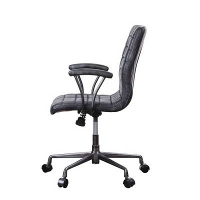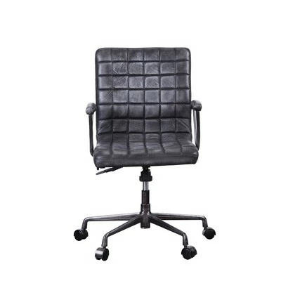 The perfect command seat, the Barack executive chair never compromise on comfort or functionality. The height mechanism makes customizing your workstation fast and easy while the swivel capability encourages movement. Featuring geometric tufted cushion with top grain leather covering it, this piece will add a touch of distinctive style and inviting comfort to any space.