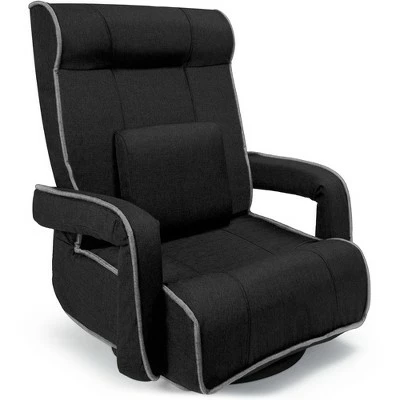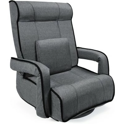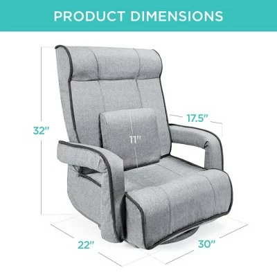 If your home is your castle, then your castle deserves a flexible throne. This 360 Swivel gaming chair is a comfortable seat with firm cushions and convenient armrests. An included lumbar pillow supports your back as you relax in reclined or upright positions, while a swivel design provides more flexibility. The ample but sleek profile is handy for any and all home relaxation including reading, watching TV, and gaming. A combination of two-tone linen and foam around a steel frame makes this a lasting addition. Take advantage of the removable armrest cover and machine-washable base cover. When you’re done gaming, this chair folds flat for easy storage when not in use while the armrests provide easy handling. Product Specifications: Overall Dimensions (22 x 30″ x 32″), Lumbar Pillow (11″), Armrests (17.5″)”