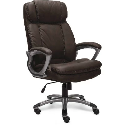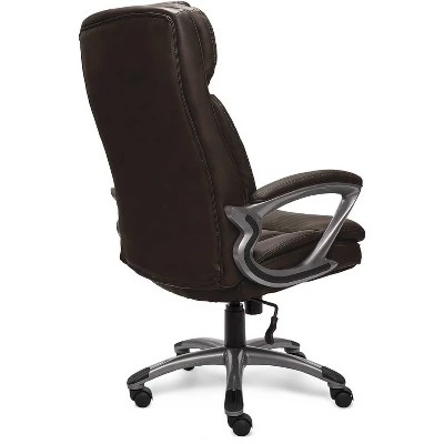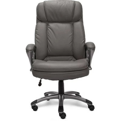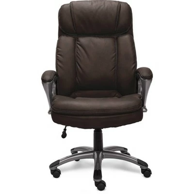 Update your office seating with this Big and Tall Executive Office Chair from Serta. This executive office chair is designed with a curved back, cushioned seat, and padded backrest, helping you stay comfortable while working those long hours. The metal base offers sleek stability, while the solid-color design makes this upholstered office chair a stylish addition. This adjustable office chair is easy to raise and lower depending on your preference, and the attached wheels help you stay mobile in your workspace.
