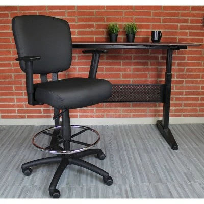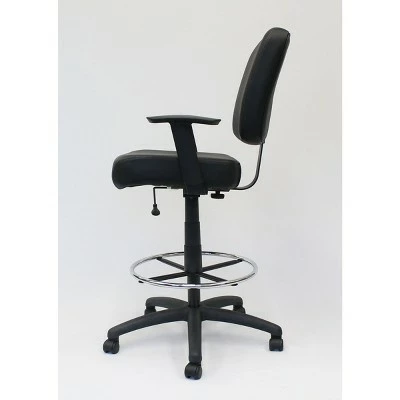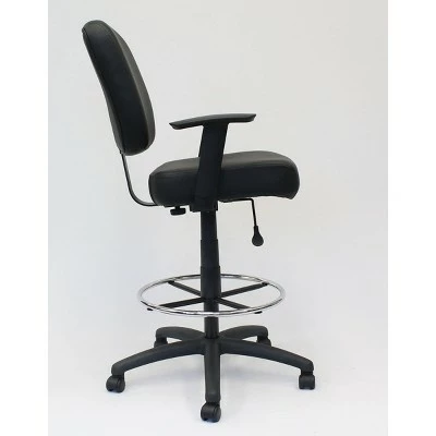 The Oversize Drafting Stool comes with extra-large seat and back cushions. It is upholstered in Black Caressoft. The stool has a pneumatic gas lift seat height adjustment, allowing for versatile adjustment of the seat height to suit your comfort and work environment. It is attached with a 20” diameter chrome footring for added leg and foot support. The large 27’’ black nylon base provides added stability to the chair. The hooded double wheel casters make it easy to move and shift directions. The height adjustable arms provide comfortable and versatile arm rests that can suit your personal preferences.