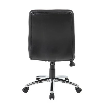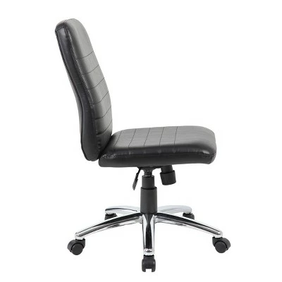 This Retro Task Chair is upholstered in Black heavy duty vinyl. It sits on a stable and stylish 25” Chrome base. It has an upright locking position feature, providing comfortable back support. The pneumatic adjustable gas lift allows for easy seat height adjustment, to help you find the personalized sitting style that suits you and your work environment. The adjustable tilt tension control knob allows you to customize the tension of the tilt. The hooded double wheel casters make it easy to move and shift directions.