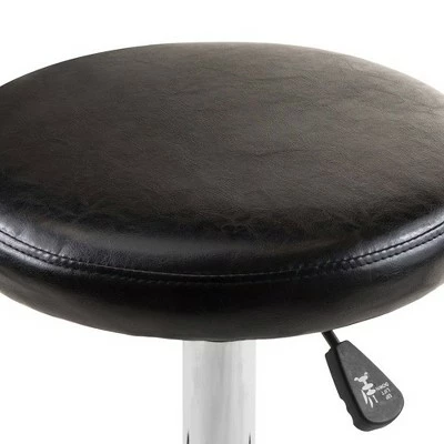 The Clark Adjustable Height Swivel Bar Stool with Cushion from Winsome adds comfort and convenience to your workspace. Featuring a sturdy metal construction, this round barstool comes with ample seat cushioning and solid black upholstery that contrasts beautifully with its chrome metal base. Complete with a swivel design and attached rolling casters for easy movement, it offers a convenient and stylish seating solution for your home. Full 360 degrees swivel. Seat height adjustable from 17.59″ to 22.32″ high. Seat diameter is 13.78″. Four black casters. Overall assembly stool dimension is 21.97″W x 21.97″D x 22.32″H.