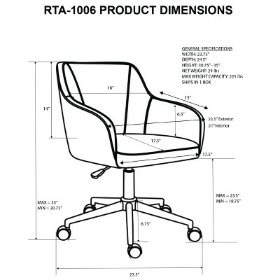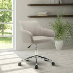 The Techni Mobili Accent Chair features durable, polyester upholstery and a cushioned seat as well as back padding for added comfort. The Techni Mobili Accent Chair makes the perfect complement to any room, complete with pneumatic height adjustable seat and a 360 degree swivel. The full sides and back make it perfect for any room setting. With a 1 year Limited warranty and ships in 1 box. Max Weight Capacity: 225 lbs. Color: Beige