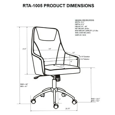 - Maximum Height, Floor to Seat Top: 22.5 Inches