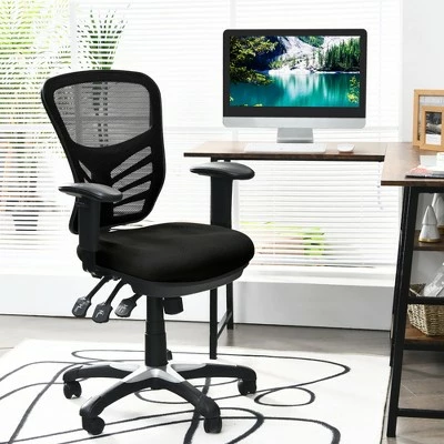 Get this office chair and enjoy the high-efficient work!. This executive chair is highly adjustable. The reclining backrest can be tilted from 110°to 125° and the height of backrest can be independently adjusted within the range of 2.5”. Meanwhile, you can choose the seat height from 17.5” to 21.5”. This customized design is dedicated to providing you with the most comfortable sitting experience on any occasion, relieving fatigue and improving working efficiency. More importantly, the ergonomic seat cushion with sunken hip shape will better fit your hip and give you long-time relaxing sitting. Curved backrest also accurately supports your back and waist and reduce body pains and aches. . Specification: Color: Grey. Material: Mesh, PP, PU, Sponge, Metal. Product Dimensions:27.5”x27.5” x 35”-39” (L x W x H) . Seat Thickness: 4” . Weight Capacity: 300 lbs. Net Weight: 35 lbs. Package Includes:. 1 x Mesh Office Chair. 1 x User’s Guide.