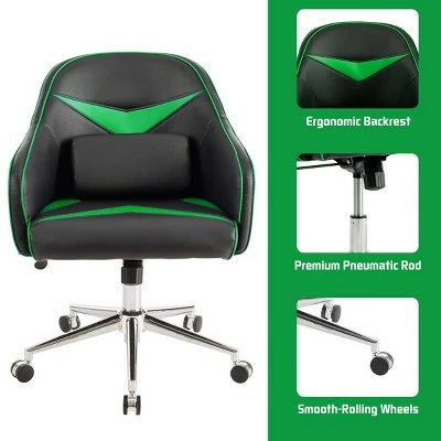 There is no better way to be involved with game or concentrate on working than in the mid-back office chair, which features ergonomic design and sturdy structure. Covered with faux leather and filled with elastic sponge, the chair provides ultimate comfort and prolonged lifespan. Lumbar support with massage function will take away stress of sitting for long time. Height adjustable seat will satisfy your different demands and caters to people of different height. If you are tired with tedious work or game, the rocking function will be a surprise. If you want to move around to have a chat with your colleagues or take some game devices in other places, the smooth rolling casters will be a perfect solution. If you want to add a functional chair to home office, the mid-century home office chair will be a good choice.. Specification: Color: As the picture shows. Material: PVC, PU, Sponge, Wood, Iron. Overall Dimension: 23.5”X23.5”X31.5”-35”(LXWXH). Seat Size: 20.5”X17.5”(WXD). Back Size: 16”X14”(WXH). Net Weight: 25 lbs. Weight Capacity: 265 lbs. . Package Includes:. 1 X Massage office Chair. 1 X Instruction .