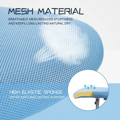 Just work in a comfortable position with this brand new office chair. Featuring pneumatic height adjustment, this office chair allows for easy operation, which offers the most comfortable position and height for you. The soft cushion that is filled with 1.5” thick sponge will offer the all-day-long comfort, whether you’re working or relaxing. Thanks to its ergonomic design, the curved backrest can perfectly fit the curve of human spine, relieving the stress on your neck and back so as to keep a most comfortable position. Besides, the office chair is specially equipped with swivel casters for easy movement. Thanks to that, free communication and collaboration in the office are available. . Specification: Color:RoseBlueTurquoisePurple . Material: Iron + Mesh + Sponge . Net Weight: 10.5 lbs . Overall Dimension: 16”x15.5”x(29.5”-34”) (L x W x H) . Load Capacity: 250 lbs . Package includes: . 1 x Office Chair . 1 x User Guide .