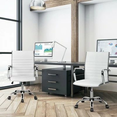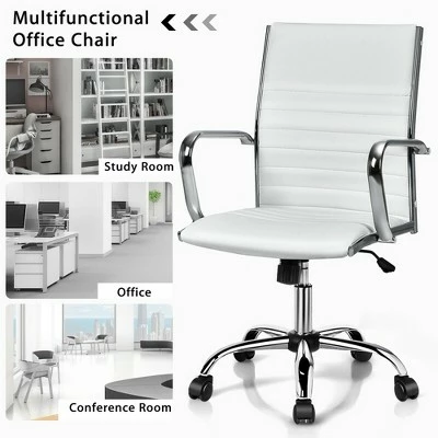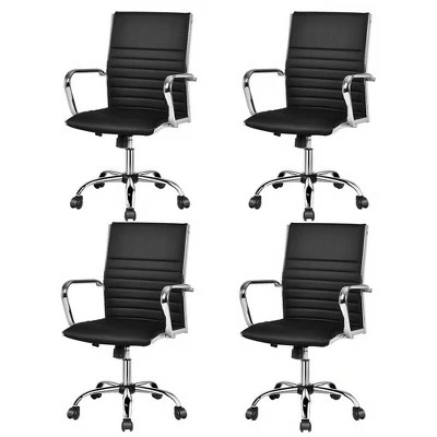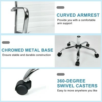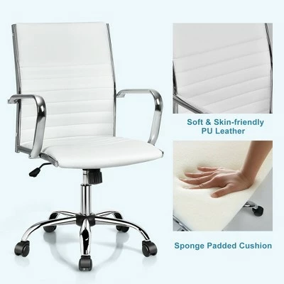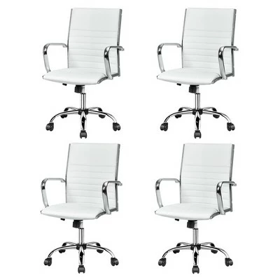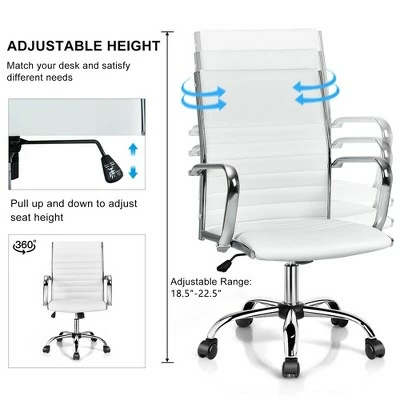 Do you want to reduce your body fatigue during working time or at home? Our office chair is your ideal choice. With height adjustable seat and rocking backrest, this office chair offers optimal comfort and relaxation to different users. The lifting mechanism makes it easier to adjust it to your desired seat height while rocking backrest allows you to get as much relaxation as possible. Moreover, the premium PU leather takes you less time in daily maintenance and high density sponge features super softness as well as good tactility. The smooth rolling casters make the movement quieter and easier from one place to another. Specification: Color: Black / White. Material: PU Leather, Sponge, Metal. Overall Dimension: 22”(L) x 24”(W) x 38” – 41.5”(H). Adjustable Seat Height: 18.5” – 22.5”. Net Weight: 29 / 58 / 116 lbs. Weight Capacity: 330 lbs. Package Includes:. 4 x Office Chair. 1 x User Guide.