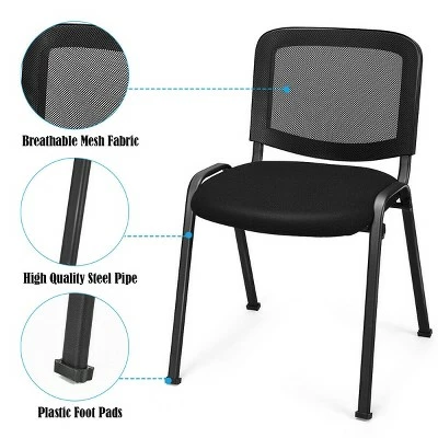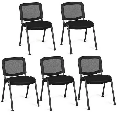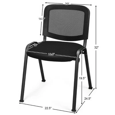 Our set of 5 conference chairs is designed to give you a comfortable sitting experience. Made of steel pipes with spray-paint treatment, our conference chairs are durable and rust resistant. Besides, thickened iron pipes and plastic pads for chair legs ensure safety and stability. Most importantly, ergonomic backrest with mesh design and foam padded seat are for your comfortable sitting experience. Don’t hesitate to buy our set of 5 conference chairs for your homes, offices, meeting rooms and reception rooms to please your guests. Specification: Color: Black. Material: Metal Tubes + Plywood + Sponge. Overall Dimension: 24.5”(L) X 22.5”(W) X 32”(H). Net Weight: 58lbs. Weight Capacity: 330lbs. Package Includes:. 5 X conference chairs. 1 X User Guide.