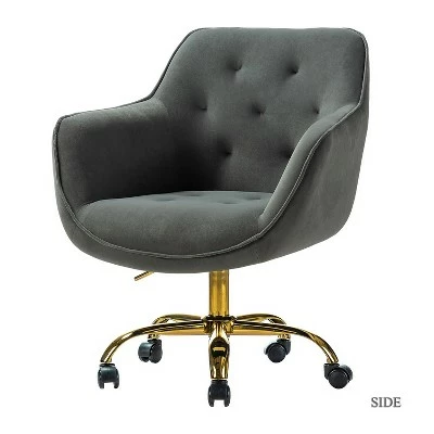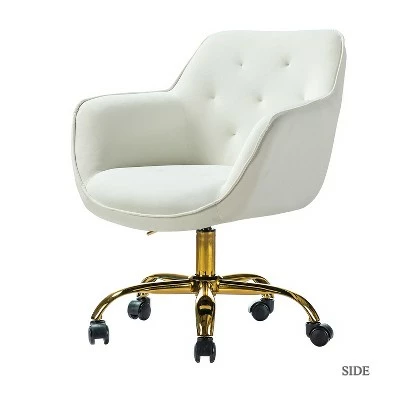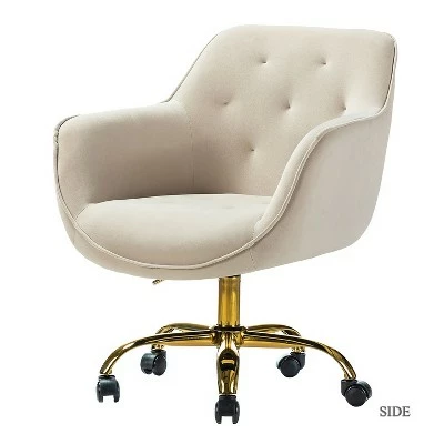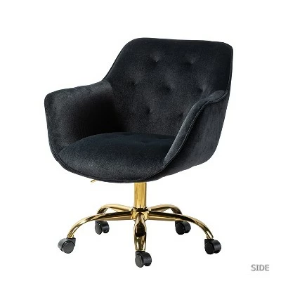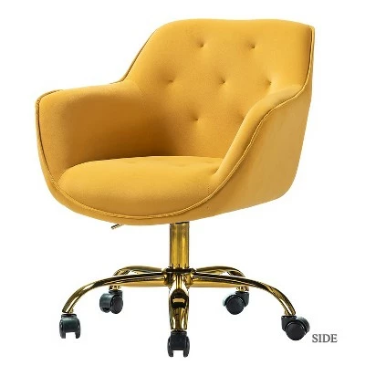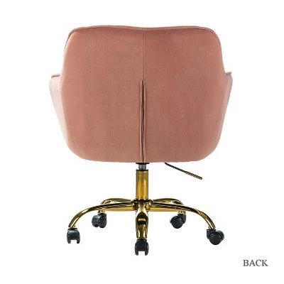 Add a touch of contemporary elegance to your space with a design that is equally functional and stylish. This Modern swivel office chair is a wonderful addition to any office or home office with its variety vibrant colors-velvet fabric upholstery that blends with any design taste. Designed in a chic style with mid-backrest and integrated arms, tufting and piped edges lend a tailored touch, while foam fill offers comfort and support. Sturdy and durable golden finish metal legs and 360-degree wheels allow you to glide to anywhere in the room, height-adjustable to tailor your professional space. The cute computer chair is ideal for any casual or professional working area. It provides comfortable support with a cozy and convenient design. Item Size: 27″Wx25″Dx32-35″H, Seat size: 17″Wx18.8″Dx16.7-19.8″H