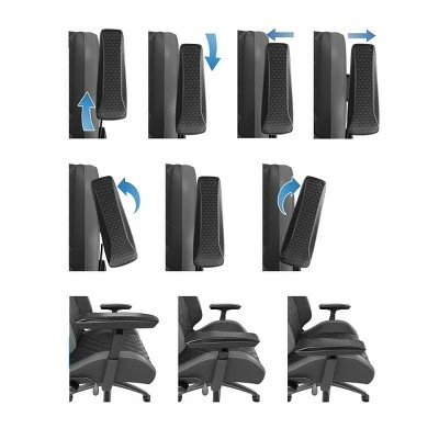 - Textured Armrest: The eight-way (front-back, glide left-right, rotate left-right, up-down), adjustable, soft PU coated, cushioned arm rests are designed to provide long-term comfort. With four inches of travel, the honeycomb textured armrests can be lowered out of the elbow zone or raised up for perfect support