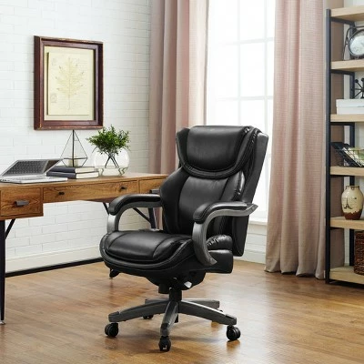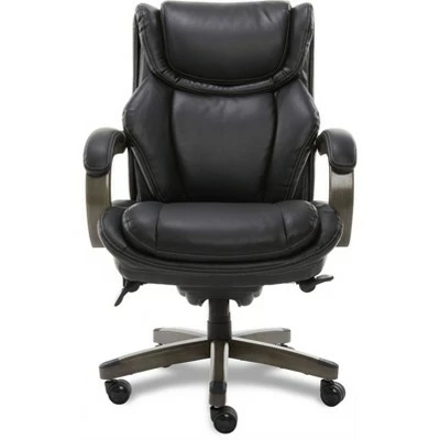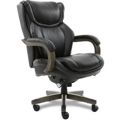 This LA-Z-Boy Executive Office Chair is designed for comfort by offering superior ergonomic features, with unique style. It uses Comfort Core, an advanced foam layering system that offers zone-based support through strategic cushion mapping. This executive office chair features soft support at front of cushion, firmer support at back of cushion and polyfiber-fill comfort top layer for supreme comfort.