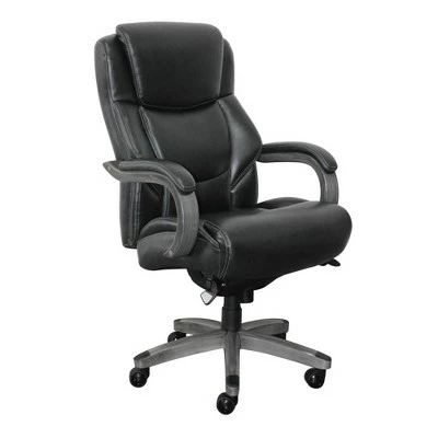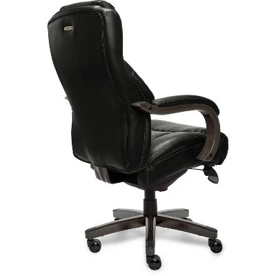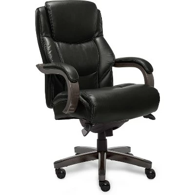The La-Z-Boy Delano is a Big and Tall high back Executive Office chair designed to bring premium comfort and support to your home or office. Upholstered in soft bonded leather with hand-sculpted real wood arms and base, this desk chair creates an elegant blend of traditional style and modern performance that will lift any office, home or entertainment space. This comfortable office chair has a contoured back lumbar panel and an advanced Memory Foam cushion layering system to give comfort and support in the areas you need it most. Ergonomic and adjustable, this La-Z-Boy office chair allows you to control the height, tilt and lift to suit your sit positioning and give you an optimized body alignment.