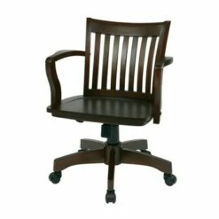 The all new Deluxe Wood Bankers Desk Chair by OSP Designs arrives in perfect form to provide you with a time-less style with modern day functionalities. Outfitted with a pressurized seat height adjustment and locking tilt control with customizable tension, this chair is a fully revamped version of the Banker Chair of the 19th century. As a modification of the slatted back arms chair of the Victorian Era, this chair exudes a classic and recherché appeal that is exclusive to this handsome style. With a durable Wood and metal base ensconced with gorgeous fruitwood finish, this chair is designed and constructed to withstand the test of time. Finished atop heavy duty dual wheel carpet casters, this chair makes the perfect addition to any home office for you to enjoy for years to come.