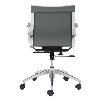 Glider low back office chair features a slim yet comfortable profile with added lumbar support, soft 100% Polyurethane upholstery and chrome arms. You will sit in elegant fashion as smooth glides create effortless motion. Tilting mechanism and seat height are both adjustable as hydraulic piston sit on metal star base to seamlessly glide you into place. Color options are black, white, gray & taupe 100% Polyurethane.