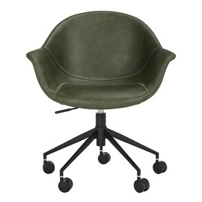 Bring comfort and color to your workstation with the Ember Office Chair from Safavieh. Set atop a five-wheel rolling base to help it easily move from one spot to the other, this swivel office chair features an ergonomic, faux-leather upholstered seat with a curved back and integrated armrests to help you breeze through long sitting hours of tight deadlines, projects or meetings. Featuring a height-adjustment lever, this office task chair allows you to adjust it to the most optimum height, while the 360-degree swivel mechanism offers extra mobility.