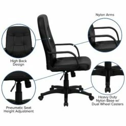 Prioritize reviving your business offices with fresh paint, contemporary light fixtures, and this ribbed office chair for every office and cubicle. You’ll fall into comfort with the ribbed back desk chair backed by curved lumbar support. An integrated back bar provides a convenient position to hang garments such as coats and jackets. Take the pressure off your shoulders and neck by resting your arms on the integrated padded arms that are framed by a glossy chrome finish. Adjust the chair to your desired height by utilizing the lever underneath the seat that also locks the chair in an upright position. When you want to lean back pull the lever out and use the knob to adjust the force that’ll be required to recline. Lessen pressure from your lower legs with the waterfall seat edge which improves circulation. Redesign your hotel business center, meeting room or home office with this mid-back desk chair to carry your space into the new century. Coordinate your entire office with our armless and high back versions. Additional Features: Tilt Lock Mechanism rocks/tilts the chair and locks in an upright position, Tilt Tension Adjustment Knob adjusts the chair’s backward tilt resistance, Pneumatic Seat Height Adjustment, 5-Star Chrome Base with Dual-Wheel Casters, LeatherSoft is leather and polyurethane for added Softness and Durability