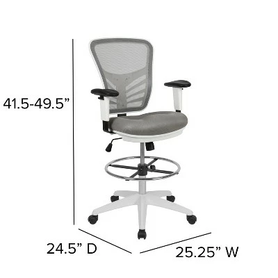 Discover a new way of office seating with an ergonomic drafting chair. With a rise in standing desks you need a compatible office chair to travel the distance with you. Enjoy the comforts of an ergonomic office chair in a taller frame to meet the needs of students and professionals working at above average desk heights. If you’re seeking an office chair to work at above standard heights in environments such as banks, architectural firms, art studios and other creative spaces a mesh back drafting stool is your perfect match. This draft chair features a ventilated mesh back with lumbar support to keep you cool along with a convenient lever to adjust the seat height and lock the seat in place to prevent you from rocking. Turning the tilt tension adjustment knob increases or decreases the amount of force needed to rock or recline. From standing desks to drafting desks this ergonomic drafting chair with contoured padded swivel seat will provide you with the comfort that you need to suit your work environment. Let this tall task chair deliver comfort while you scratch items off your to-do list. Additional Features: Contoured Mesh Upholstered Seat with CAL 117 Fire Retardant Foam, Pneumatic Seat Height Adjustment, Height Adjustable 20″ Round Chrome Foot Ring, 5-Star Nylon Base with Dual-Wheel Casters