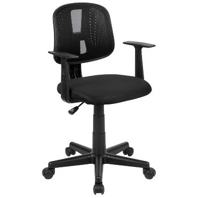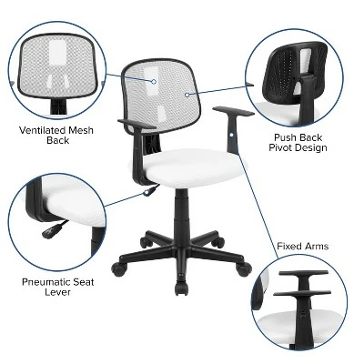 Tackle the workday with any challenge that comes your way on this snazzy desk chair. The cooling designer back features mesh material for exceptional airflow combined with gentle curved lumbar support. Proper support to the upper body provided by the fixed nylon arms. Our Fundamental Task Chair will make an impressive footprint in your office with its cutting edge structure. The innovate back pivots backward while leaning back for a comfortable resting period. Adjust your office desk chair with the pneumatic adjustment lever that controls the height of your seat. Effectively switch between tasks with 360 degrees of swivel motion. Providing exceptional value for today’s modern office, our Fundamental Seating will afford you the opportunity to purchase seating for students and small businesses. Additional Features: 5-Star Nylon Base with Dual-Wheel Casters