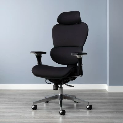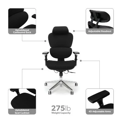 The OFM Ergo chair offers similar ergonomics and functionality as leading ergonomic office chairs at a fraction of the price and a sleek, stylish look that is sure to get attention. The Ergo fabric upholstered chair features a 3 part contoured back with optional headrest. The chair’s seat is also covered in premium fabric. This office chair is full of ergonomic touches like adjustable lumbar, seat depth adjustment, Synchro-Tilt control and 4D adjustable arms that allow for height, front and back, arm width and arm pivoting adjustment. This computer chair also features a chrome base with arm and caster accents. This desk chair meets ANSI/BIFMA standards and has 275 lb weight capacity. This desk chair is backed by the OFM Limited Warranty.