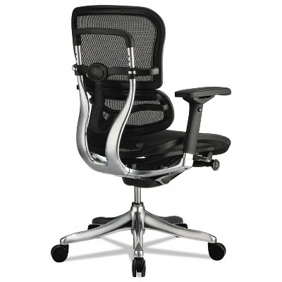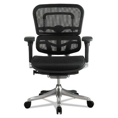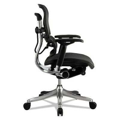 Raynor Eurotech Ergohuman Mid Back Executive Chair, Patterned Mesh, Black, Seat: 20″W x 19 3/10″D, Back: 20 7/10″W x 32″H Executive mid back chair. Mesh material. Black seat/back. Overall dimensions: 39 4/10″- 45″H x 26 4/10″W x 26″D. Full assembly required. Ergonomically designed to includes synchro tilt, tilt tension control, tilt lock, back angle adjustment. Seat height and depth adjustment, back height adjustment, height adjustable arms. Pneumatic height adjustment. Swivel and depth adjustable arms, lumbar support, waterfall seat. Single lever adjustment. Mfg. Limited Lifetime Warranty. Sold as 1 Each.