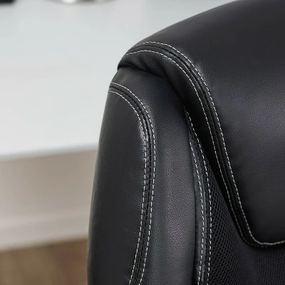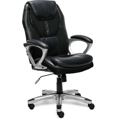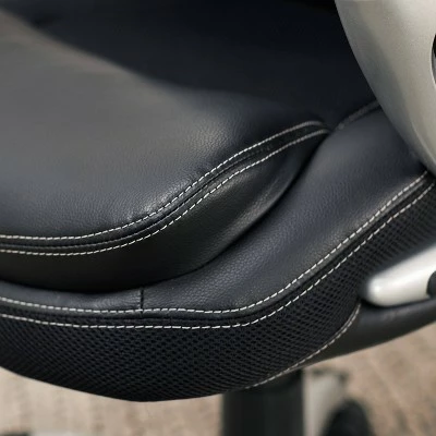 The Serta Works Executive Mesh Chair can do laps around any ordinary office chair. Made with gamers and programmers in mind, this feature rich chair can help improve your posture. Its ergonomic seat and lumbar are contoured to provide customized support and reduce stress in back, neck and shoulders. The pneumatic seat height adjuster works with a simple weight shift, making it easy to find the right fit for you. And with its sleek, race car inspired design, you’ll feel like you’re sliding into the driver’s seat of a high-performance race car. Made with faux leather upholstery and breathable mesh accents, this chair will keep you cool so you can warm up for your next presentation or round of Gran Turismo.