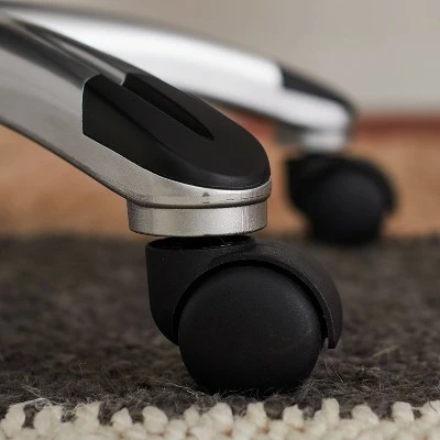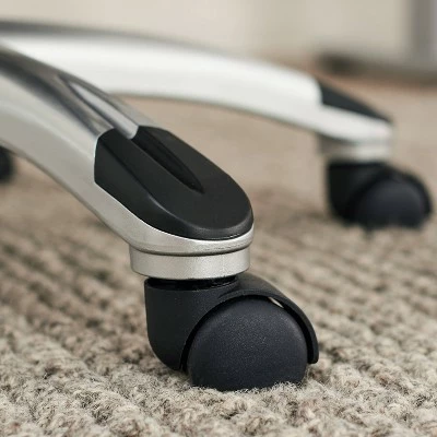 - Multi-surface dual wheel designer casters capped and painted to match arms and base offer stability and smooth rolling