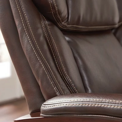 The La-Z-Boy Bellamy Executive Office Chair is ergonomically designed to help you have a great workday! Featuring a contoured lumbar panel and strategically-assigned plush body pillowing, you’ll enjoy advanced, all-day back support. Adjust the height, recline, and tilt to create a seating experience customized for your workspace. The layered memory foam cushions and padded armrests cushion your hips, arms, and shoulders, so you’ll feel great from 9 to 5, and beyond! Seat height range: 20 – 23 inches H. Seat depth: 19.25 inches D. Seat width: 21 inches W. Supports up to 250 pounds. Ten year limited warranty.
