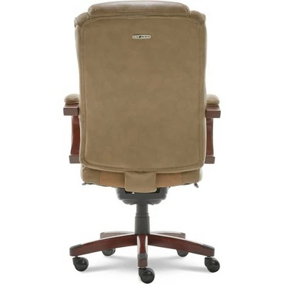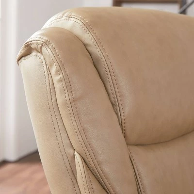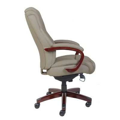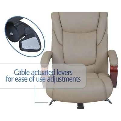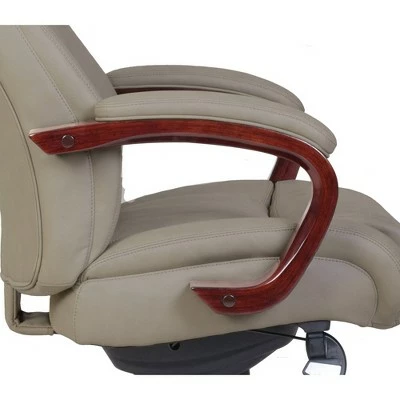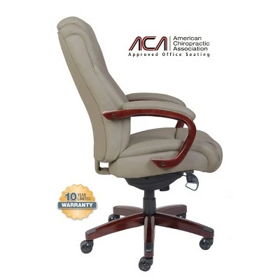Crafted with wood components, this high-back office chair with hand-sculpted arms is upholstered in soft bonded leather to create an elegant blend of traditional style and modern performance that is ideal for any office, home or entertainment space.