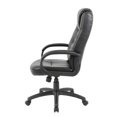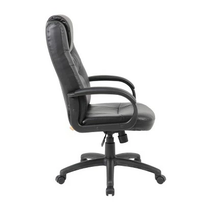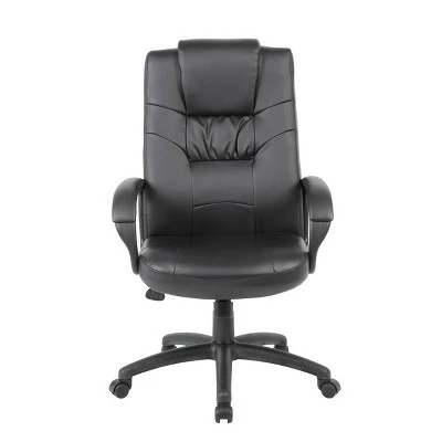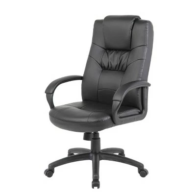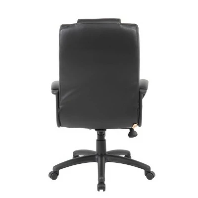 Our high back executive LeatherPlus chair is the perfect compliment to any office. Upholstered with beautiful black LeatherPlus, a combination of leather and polyurethane that promotes exquisite softness and durability, this chair is more than capable of taking comfortable seating to a new level. Additional features include passive ergonomic seating with integrated lumbar support, padded armrests covered in the same elegant upholstery, an upright locking position, pneumatic gas lift seat height adjustment, spring-tilt mechanism, and adjustable tilt tension control.