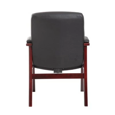 Our executive leather guest chair makes the perfect addition to any office, study, or waiting room. It is beautifully upholstered in eye-catching Italian leather, this chair is sure to impart an extra layer of sophistication while providing a comfortable seating experience. It features matching hardwood arms with easily removable pads, passive ergonomic seating with integrated lumbar support, and an overall weight capacity of 275 pounds. It pairs perfectly with our elegant executive seating chairs (B8901 and B8902).