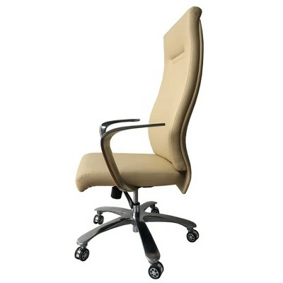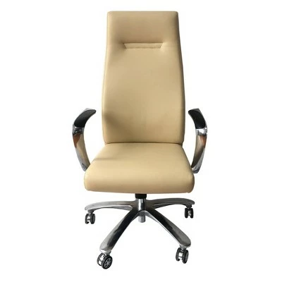 Revamp your study and office space by bringing in this coveted contemporary Executive style Office Chair and ensure ultimate seating experience whilst working. Incorporated with a padded seat and cushioned backrest, this piece of furniture is equipped with 360 degree swivel and gas lift adjustable height mechanism. Constructed from the combination of plywood and metal, it is upholstered with beige color faux leather. Supported on five star legs with casters for mobility, it will be a perfect addition to your place and at the same time will also enhance the overall aesthetics of your place. It also comes with a seat height adjustability feature so that you can adjust the height of the seat according to your height and sit comfortably.