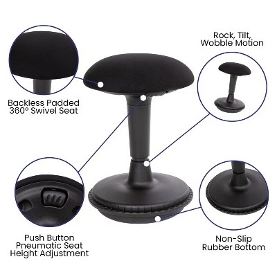 - Product Name: Flash Furniture Adjustable Height Active Office Stool – Black Sit-To-Stand Learning Chair – Padded Swivel Stool with Rocking, Wobble, Tilting Motion