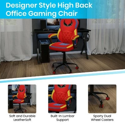 - Product Name: Flash Furniture Ergonomic Office Computer Chair – Adjustable Red & Yellow Designer Gaming Chair – 360° Swivel – Red Dual Wheel Casters