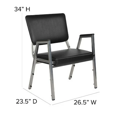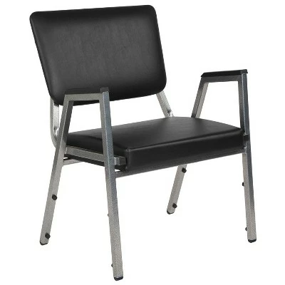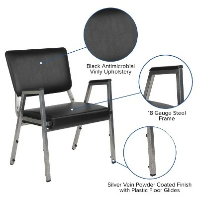 Provide safe seating for all patients in the healthcare industry with these medical grade reception chairs. Settle in faster with a 21.5″ extra wide seat with thick cushioning while the supportive 18-gauge tubular frame withstands up to 1000 pounds. The chair arms give extra support to help users ease into the chair. Assemble group therapy sessions placing these metal chairs in a circle. These 3/4 open back bariatric guest chairs can be used for temporary sessions or setup permanently in your waiting room. These metal chairs stack up to 10 high for storage when not in use while the plastic bumper guards safeguard the frame from scratches. If you need seating for your healthcare facility these antimicrobial guest chairs are an excellent choice for your waiting room and patient room. Designed for intensive use this easy to clean chair is optimal for your high traffic environment. Additional Features: 18 Gauge Steel Frame, Powder Coated Frame Finish with Plastic Floor Glides, Plastic Bumper Guards Protect Finish When Stacked, Designed for High Traffic Commercial Use