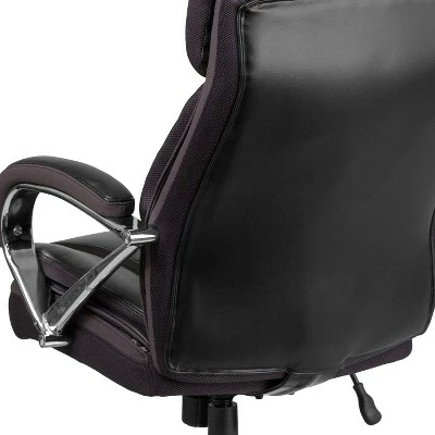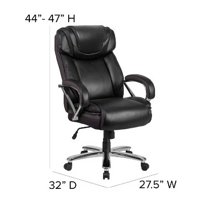 If your job or hobby requires you to sit for long stretches of time having the right chair is priceless. Big & Tall office chairs are designed to accommodate larger and taller body types. This chair has been tested to hold a capacity of up to 500 lbs., offering a broader seat and back width. This office chair features plenty of thick, plush padding for comfort along with an embellished mesh trim throughout the chair. High back office chairs have backs extending to the upper back for greater support. The high back design relieves tension in the lower back, preventing long term strain. The included headrest will take the pressure off of your neck while leaning back. The tilt lock mechanism offers a comfortable rocking/reclining motion. The free rein motion is great for taking a quick break from typing to answer phone calls and relax. The waterfall front seat edge removes pressure from the lower legs and improves circulation. Chair easily swivels 360 degrees to get the maximum use of your workspace without strain. The pneumatic adjustment lever will allow you to easily adjust the seat to your desired height. The chrome base adds a stylish look to complement a contemporary office space. Additional Features: 6″ Thick Padded Seat with CAL 117 Fire Retardant Foam, Padded Chrome Arms, 22″ Wide Swivel Seat, Pneumatic Seat Height Adjustment, Contoured Back and Seat, Waterfall Seat reduces pressure on your legs, Heavy Duty Chrome Base, Dual Wheel Casters, LeatherSoft is leather and polyurethane for added softness and durability