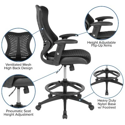 - Product Name: Flash Furniture High Back Designer Black Mesh Drafting Chair with LeatherSoft Sides and Adjustable Arms