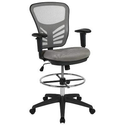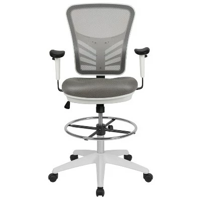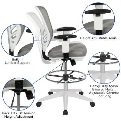 Flash Furniture Mid-Back Mesh Ergonomic Drafting Chair with Adjustable Chrome Foot Ring, Adjustable Arms