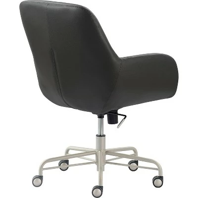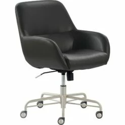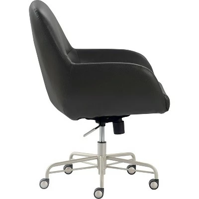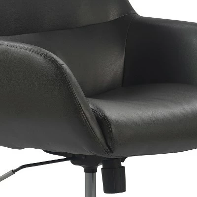 Cool and confident, the Forester Home Office Chair is stylish and sophisticated. Its high end design is upholstered in rich, executive level leather with a high-tech inspired architectural base in silver or bronze metallic features. Ergonomic and comfortable, the cushioned seat, padded arms and mid back provide support to keep you focused during those long meetings. Mid century modern design makes it an ideal computer chair for your study, a teen room or dorm.