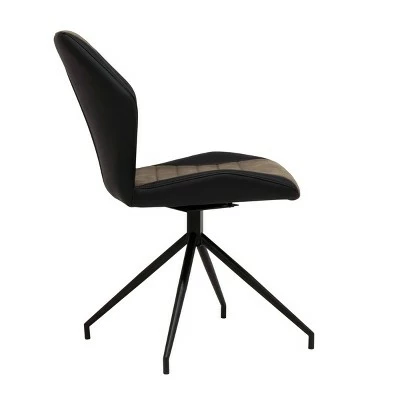 The Gladstone Two-Tone Swivel Armless, Home Office Accent Chair with 4-Star Metal Base features a unique modern base with a padded seat and back. The 2-tone black and brown combination and full 360-degree swivel make it the distinct modern update your home office. The special diamond-shaped back and armless design gives you plenty of room to work. The upholstery is durable and easy to clean. The steel legs feature a powder-coated finish that resists scratches or corrosion.