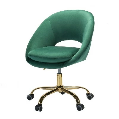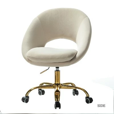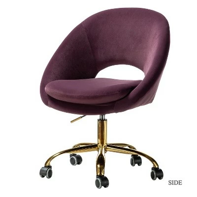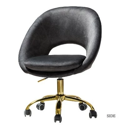 This is not your standard office chair. Its curvaceous velvet seat add a modern touch to conference rooms and fancy corner offices. It offers supreme comfort thanks to its ergonomic shape and features a durable frame and smooth-rolling casters.Durable gold finish metal legs and high performance all directional wheels allow smooth movement across carpeting.This chair features a luxurious velvet fabric, comfortable for skin touch. High-density foam filling with the solid wood hand-crafted frame provide perfect balance between firm and squishy.This office chair is a wonderful addition to any office or home office.