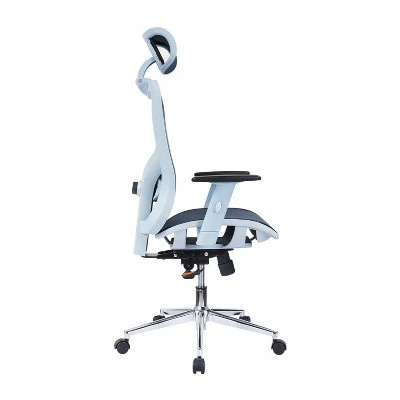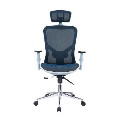 This ergonomic chair brings eye-catching design and comfort to your office or desk, featuring high-quality mesh material, outlined with blue frame combined with sturdy metal chrome base. Adjustable lumbar pad provides all day comfort and support, while the breathable back keeps you cool and comfortable during long working hours. The chair features tilt with tension lock mechanism, pneumatic adjustable height, armrests and headrest for the perfect fit along with the non-marking casters provide easy mobility. It has the weight support capacity of 250lbs and comes with 2-year limited warranty.