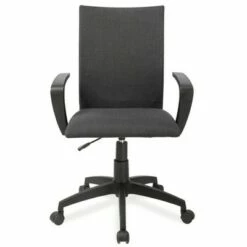 This black linen covered office chair offers a clean, contemporary design. Matte black arm and base elements add the finishing touch to this home office chair. The adjustable seat height and full 360 degree swivel adapts this chair to your specific needs. The star base with casters will glide over wood, laminate or even carpeted flooring. Ensure the home office is ergonomically designed with the waterfall edged seat feature.