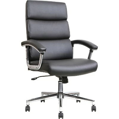 - High-back chair features bonded leather upholstery over thickly cushioned seating for deluxe comfort and style. Weight capacity is 250 lb.