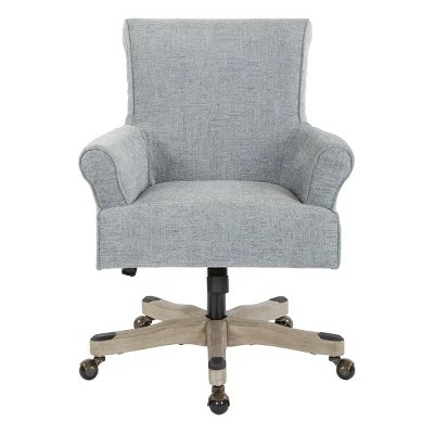 Create the home office of your dreams with this classic desk chair. Envelope yourself in the luxury of polyester fabric, while the scroll back and rolled arms offer stylish, comfortable support while working. A lacquered wood base allows adjustable height and effortless movement from task to task. Dress up your home office with the OSP Accents Megan office chair.