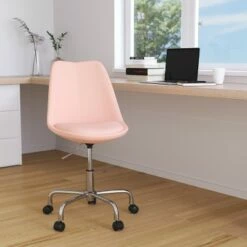 Avant-garde in spirit, yet practical in function, this trendy office chair was made with contemporary settings in mind. The agile shaped mid-back design provides a natural seating posture that can be easily lowered or lifted using the pneumatic seat height adjustment lever and features 360° swivel. Chrome at the base makes it sleek and strong, while dual wheel casters also make it safe for moving across flooring surfaces. Mid century modern through and through, this chair is ideal in 21st century settings. Additional Features: Dynamic 360° Swivel, Sleek metal base with Dual-Wheel Casters, Item Size: 24″W x 24″D x 32.5-36.5″H; Seat Size: 18″W x 16″D x 17.5-21.5″H