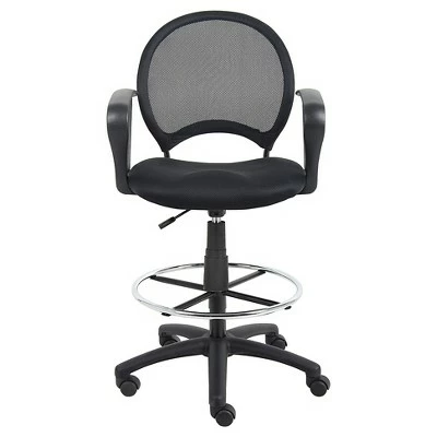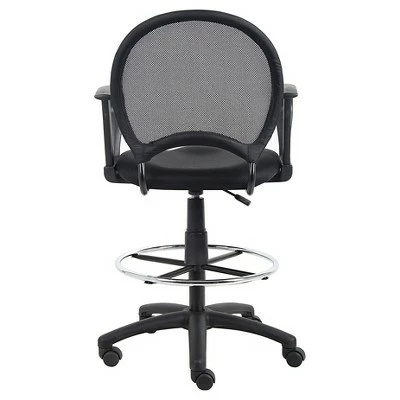 This mesh drafting stool comes with an open breathable mesh fabric that will keep you cool and comfortable during extended periods of work. The seat is supported with a solid metal back frame with ballistic nylon wrap, providing a stable and comfortable back rest. The pneumatic adjustable gas lift allows for easy seat height adjustment, to help you find the personalized sitting style that suits you and your work environment. The 20” chrome footring provides added foot and leg support. The 25” nylon base provides added stability to the chair by spreading the load over a larger surface area. The hooded double wheel casters make it easy to move and shift directions. The Loop Arms make for comfortable and natural arm rests.