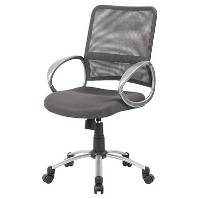This mesh back task chair in charcoal gray with a pewter finish is a fun modern design and adds a pop of color to any office or room. The chair has a 275 lbs. weight limit and provides a pneumatic gas lift mechanism for adjustable height options also offers tilt tension, a spring tilt mechanism and an upright lock. The chair also offers a sturdy 27 inch pewter base with 2 inch nylon dual wheel castors for a smooth roll.